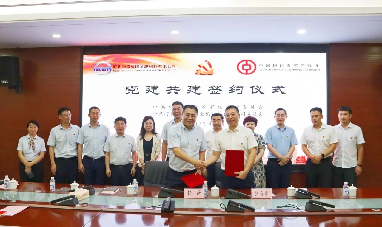 2023年7月21日,中共中國(guó)銀行石家莊分行委員會(huì)與中共河北物流集團(tuán)金屬材料有限公司委員會(huì)舉行黨建共建簽約儀式,中國(guó)銀行石家莊分行黨委副書記、副行長(zhǎng)韓蔚一行與金屬公司黨委書記、董事長(zhǎng)張有貴等公司領(lǐng)導(dǎo)進(jìn)行交流座談。